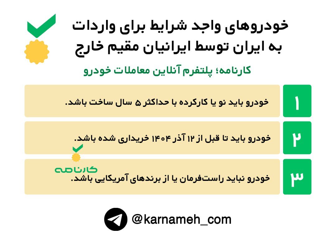 نوشته جزئیات جدید واردات خودرو برای ایرانیان مقیم خارج اولین بار در وبلاگ کارنامه. پدیدار شد.