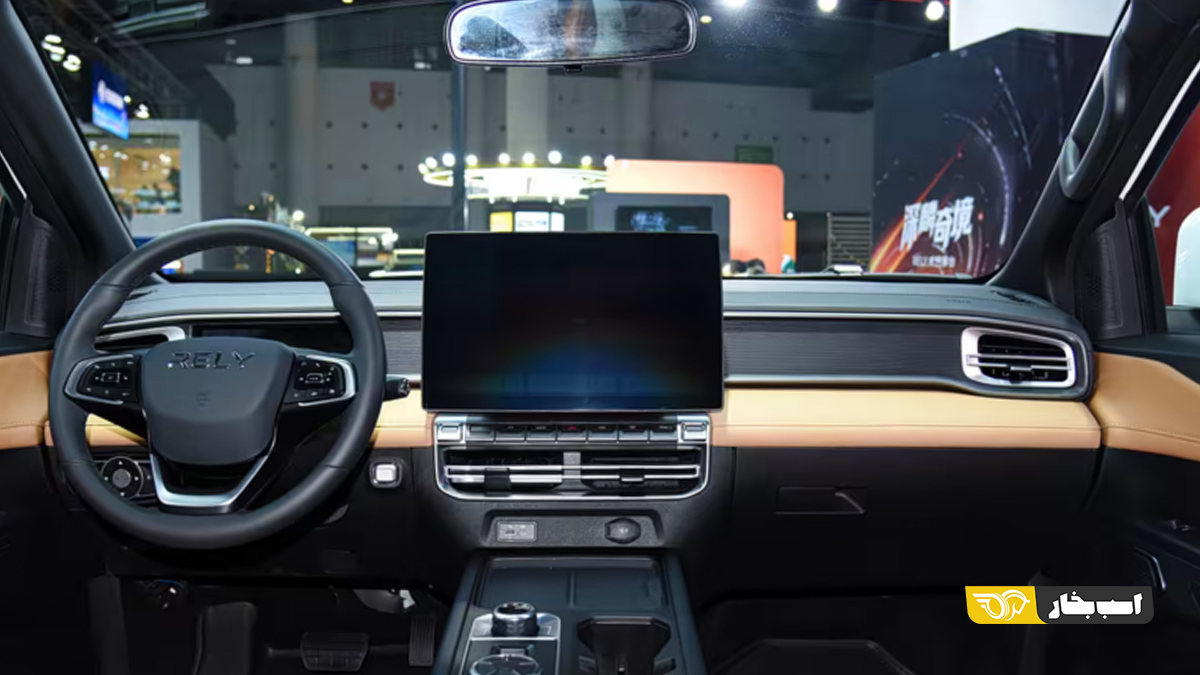 درون کابین هیملا شاهد طراحی خوب، نرمال و البته مدرنی هستیم. مانیتور با ابعادی بزرگ در مرکز داشبورد کار شده و یک نوار مشکی که کلاستر را نیز در دل خود جای داده است، سرتاسر عرض داشبورد را فراگرفته. ترکیب رنگ مشکی و کرم و دستهدنده الکترونیکی چرخشی نیز از دیگر مواردی است که در کابین هیملا به چشم میآیند.