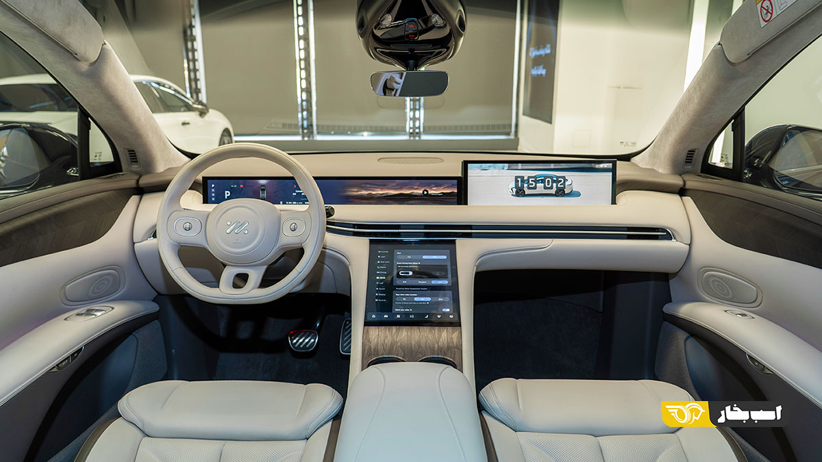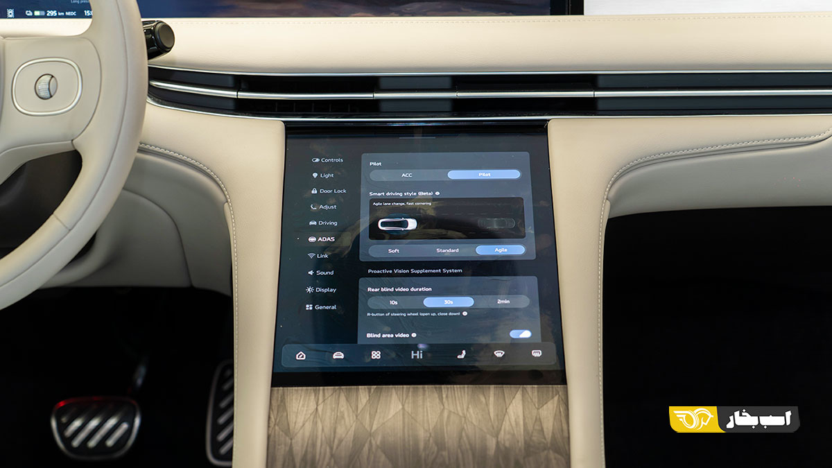 IM LS7 به آپشنهای رانندگی خودکار سطح ۲.۵، سیستم بازگشت مسیر طی شده (لمسی – هوش مصنوعی)، سیستم خروج از پارک (لمسی – هوش مصنوعی)، سیستم پارک خودکار (لمسی – هوش مصنوعی) سیستم رادار بین خطوط هوشمند، تغییر Lane هوشمند، هشدار باز شدن دربها (DOW)، رادار هشدار برخورد از جلو (FCW)، رادار نقطه کور، نمایش اطلاعات محدودیت سرعت، رادار و هشدار برخورد از عقب، سیستم هوشمند کنترل فاصله هنگام پارک، سیستم کنترل پارک خودکار، کروز کنترل تطبیقی، کیسههای هوای جلو – جانبی – پردهای – میانی در مجموع ۱۱ عدد، سیستم کنترل پایداری الکترونیکی، کنترل ترمز در پیچ، سیستم بازیابی انرژی، کنترل دینامیکی خودرو، کمربند ایمنی پیش کشنده ۳ نقطهای، سیستم کنترل حرکت در سربالایی و سراشیبی (شیبسنج)، TPMS، داری ۵ ستاره ایمنی C-NCAP، شاسی مستحکم از جنس آلیاژ زیردریایی، سیستم تعلیق بادی فعال تطبیقپذیر، صندلی VIP ردیف دوم با تکنولوژی Zero Gravity، تکنولوژی دید در شب یا رادار PVSS، تنظیم ارتفاع خودرو، درب هوشمند با قابلیت باز و بستهشدن اتوماتیک، وکیوم دربها، صندوق برقی، دوربین ۵۴۰ درجه با اسکن زیر خودرو، ۵ گرمکن و ۳ سردکن صندلی، ۳ ماساژور صندلی، ۴ صندلی برقی، صندلی راننده ۱۶ حالته برقی، فرمان تلسکوپی برقی به همراه تشخیص عدم تماس دست، گرمکن فرمان، مانیتور و مولتی ۴۲ اینچی با کیفیت 4K، نمایشگر مرکزی OLED با اندازه ۱۳ اینچ، سیستم روشنایی جلو ویدیو پروژکشن، گیره مغناطیسی، تهویه اتوماتیک ۳ کاناله، شارژر وایرلس، خروجی برق ۲۲۰ ولت، شیشههای لمینیت دوجداره عایق صدا، چرم طبیعی صندلیها و تریم داخلی، جلوپنجره با قابلیت بازشوندگی اتوماتیک جهت بهبود آیرودینامیک و سیستم خنککاری باتری، شیشه جلو Starfall، سقف شیشهای پانوراما دوجداره، دربهای فریم لس، دستگیرههای مخفی شونده خودکار، آیینههای جانبی برقی، رینگ ۲۲ اینچی، نورپردازی داخلی ۲۵۶ رنگ، سیستم صوتی با ۲۴ اسپیکر، پخش دیجیتال صدا، سیستم عامل IM OS، پردازنده ۸۱۵۵ Qualcomm، اپل کار پلی و اندروید اتو، ریموت هوشمند، کارت NFC، دوربین ثبت وقایع، ۷ حالت رانندگی و تماس اضطراری الکترونیکی (E-CALL) مجهز است.