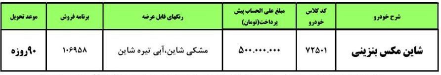 گروه صنعتی ایران خودرو در جدیدترین فراخوان ویژه برندگان سامانه یکپارچه خودروهای وارداتی، شاین مکس بنزینی را به صورت پیش فروش نقدی با موعد تحویل ۹۰ روزه عرضه میکند:
