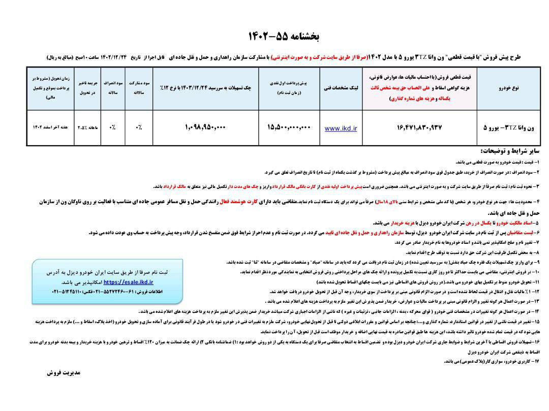شرایط فروش ایران خودرو دیزل: ون وانا – اسفند ۱۴۰۲